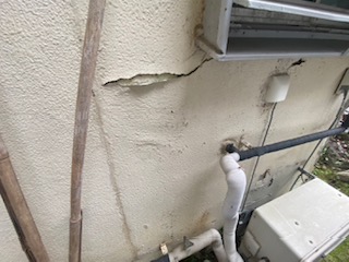 外壁のひび割れや錆びなどが見られます💦